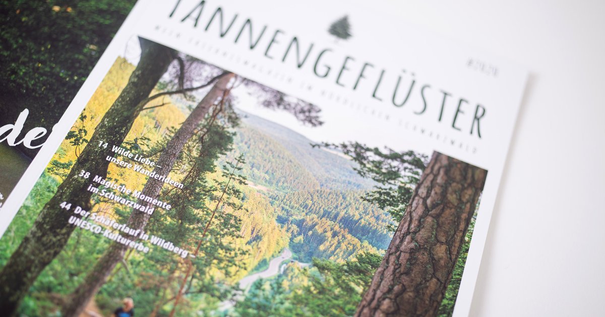 Mit dem regelmäßig erscheinenden „Tannengeflüster“ als Tourismus-Magazin für den Nördlichen Schwarzwald, erschafften wir das Leitmedium für weitere Magazine und Broschüren. Dabei entstand der Name „Tannengeflüster“ in unserem Haus, ebenso wie das komplette Magazin-Design und die Abwicklung des Druckes. Auch das Magazin „Kraftorte“ realisieren wir nach diesem Erfolgsprinzip. Es beinhaltet eine Übersicht aller Thermen, Wellnesshotels und Salzgrotten in der Region. Zudem unterstützen wir den Kunden bei flankierenden Maßnahmen wie der Herstellung passender Give-Aways.